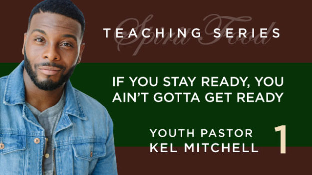 This week Youth Pastor Kel Mitchell of Spirit Food Christian Center in Winnetka teaches a message titled “If You Stay Ready, You Ain’t Gotta Get Ready”.  The Boy Scout’s motto is be prepared.  As Christians, we can learn a lot from that motto – are we prepared?  When we pray, are we prepared to receive? When God sends us blessings, are we willing to do what’s necessary to receive them?  Are we spending enough time…